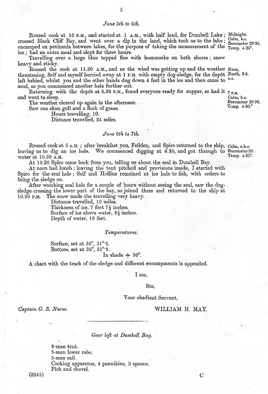 The third part of Sir William May’s Sledge Journal for the Nares’ Arctic exploration expedition of 1875-6 sent by the British Government in an effort to reach the North Pole. For his part in this expedition May was promoted Commander over the heads of 60 Lieutenants. The following parts will be put up every two weeks. Download PDF